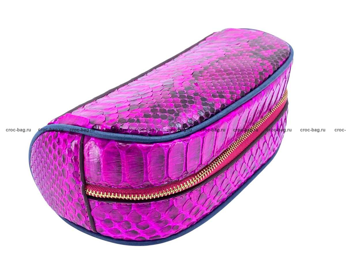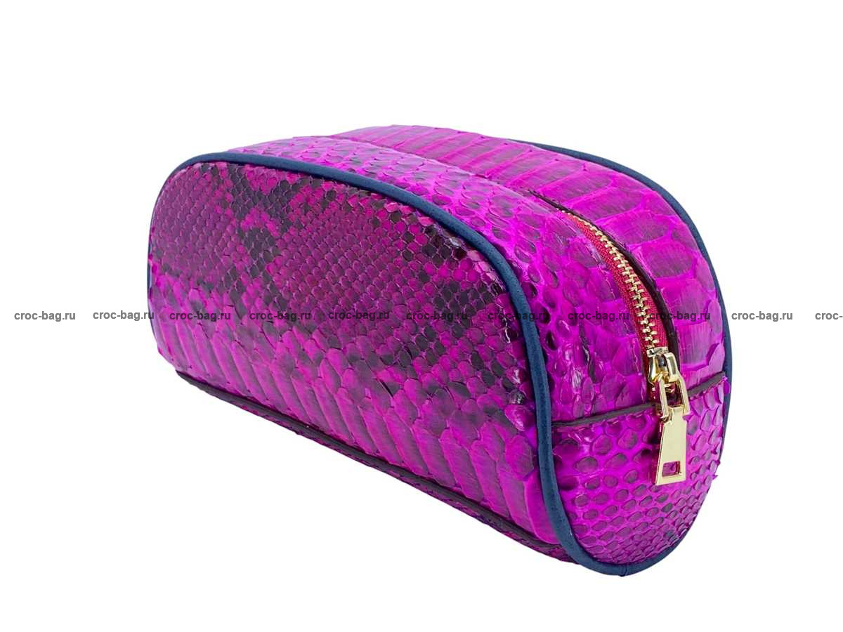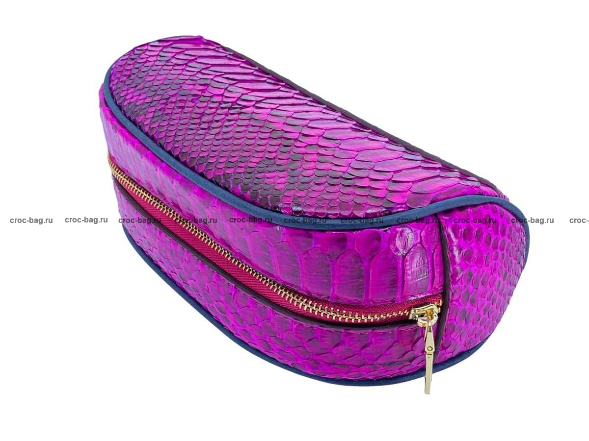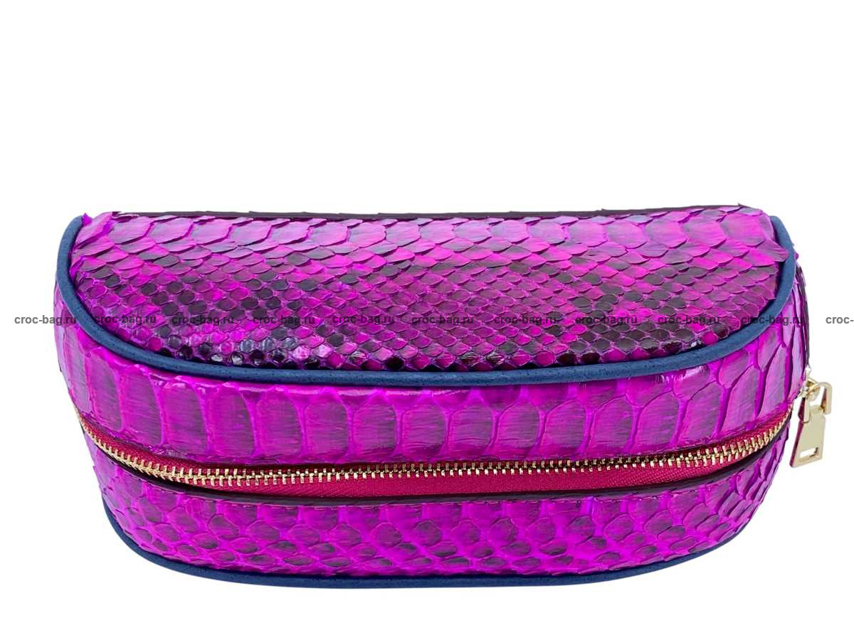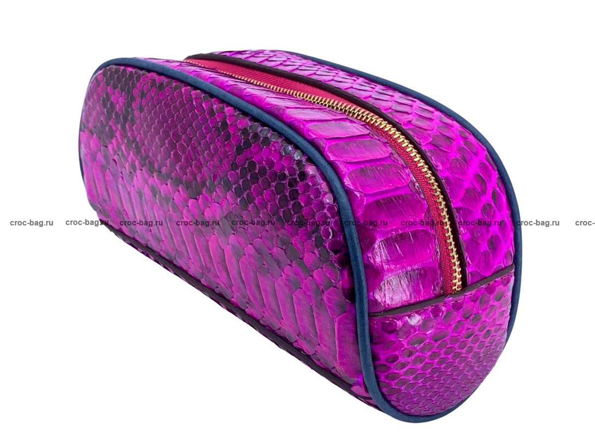 Несессер, косметичка из кожи питона цвет фуксия