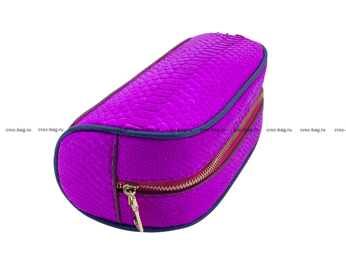 Несессер, косметичка из кожи питона цвет фуксия