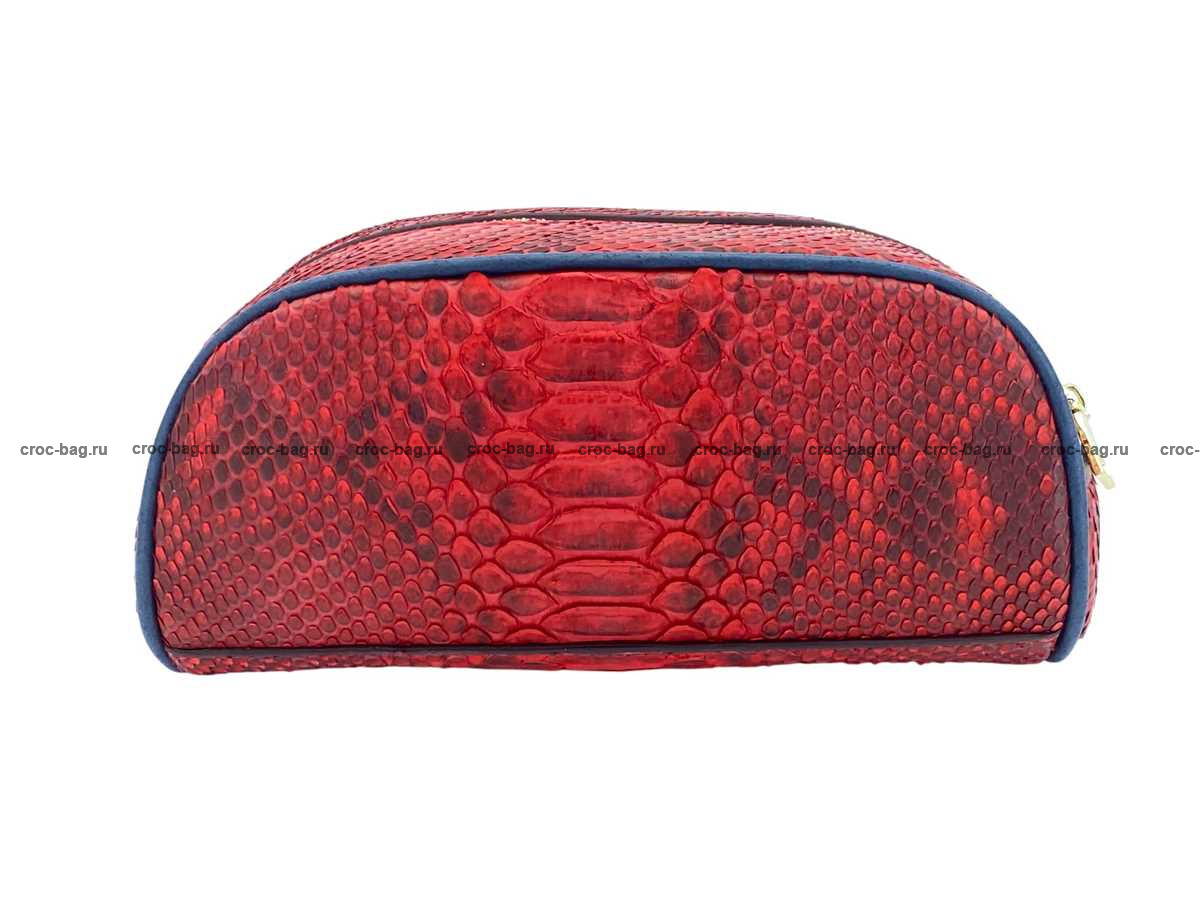 Компактная косметичка, несессер из питоновой кожи, овальной формы в верхней части. В верху питонового несессера вшита металлическая молния с небольшими запусками на края несессера, что при полном открытии молнии, позволяет получить более широкий и удобный доступ внутрь несессера из кожи питона . Внутри косметичка выполнена в одном объеме, текстиль использован в качестве материала подклада. Все внешние поверхности несессера выполнены с применением натуральной кожи питона. Данная питоновая косметичка отшита в серии косметичек из натуральной кожи питона в различных цветах.