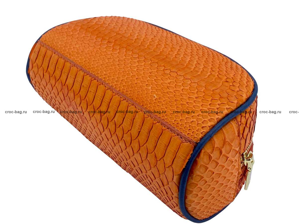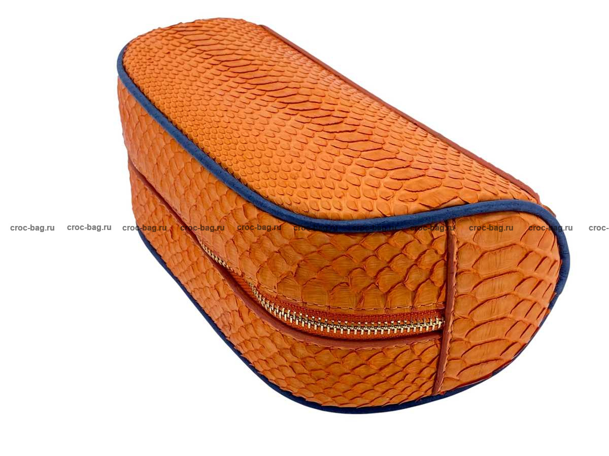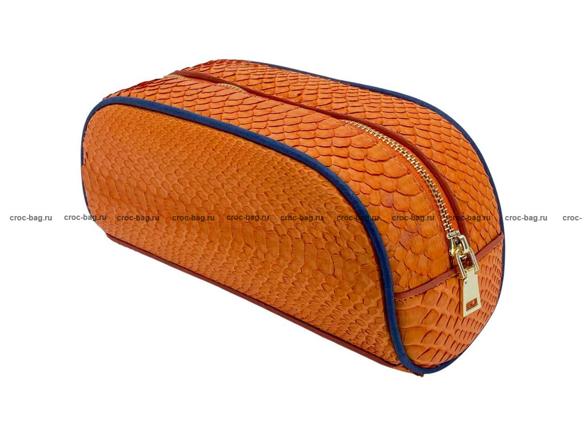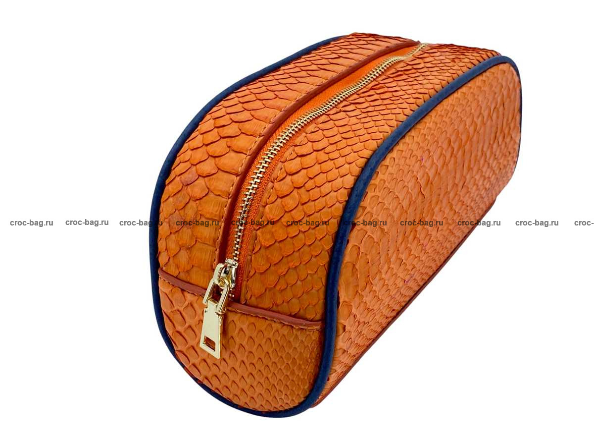 Компактная косметичка, несессер из питоновой кожи, овальной формы в верхней части. В верху питонового несессера вшита металлическая молния с небольшими запусками на края несессера, что при полном открытии молнии, позволяет получить более широкий и удобный доступ внутрь несессера из кожи питона . Внутри косметичка выполнена в одном объеме, текстиль использован в качестве материала подклада. Все внешние поверхности несессера выполнены с применением натуральной кожи питона. Данная питоновая косметичка отшита в серии косметичек из натуральной кожи питона в различных цветах.