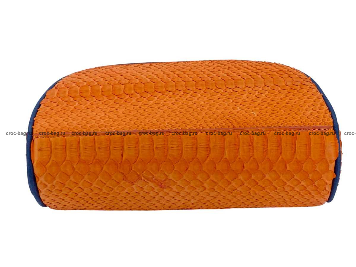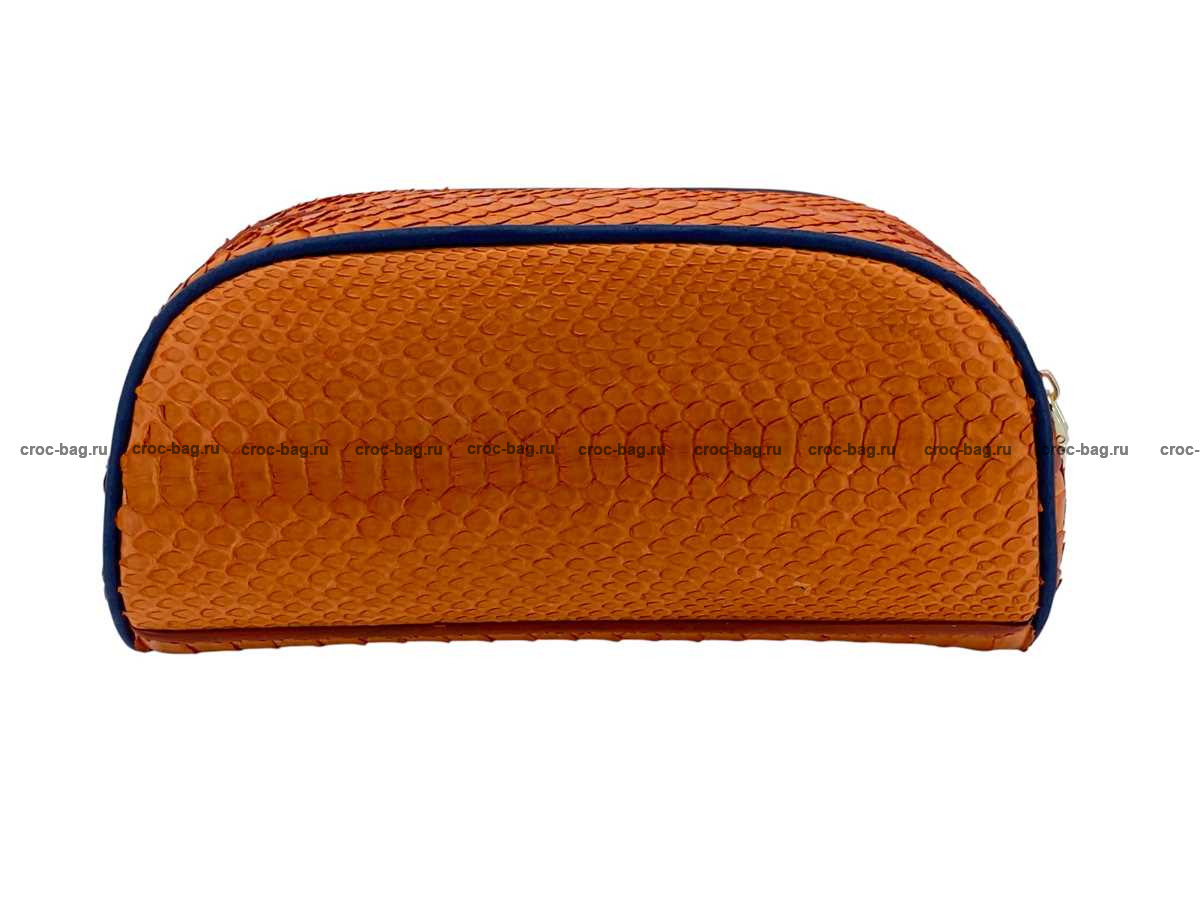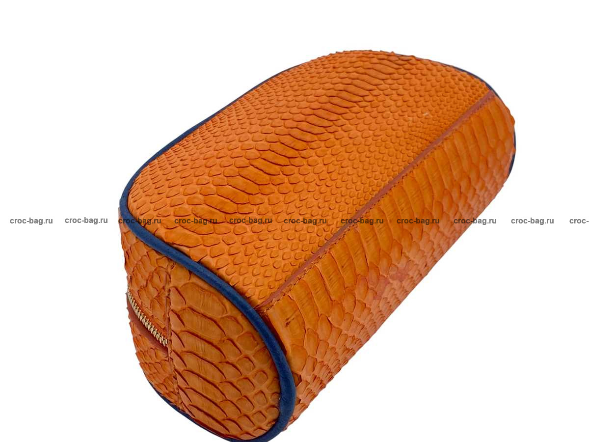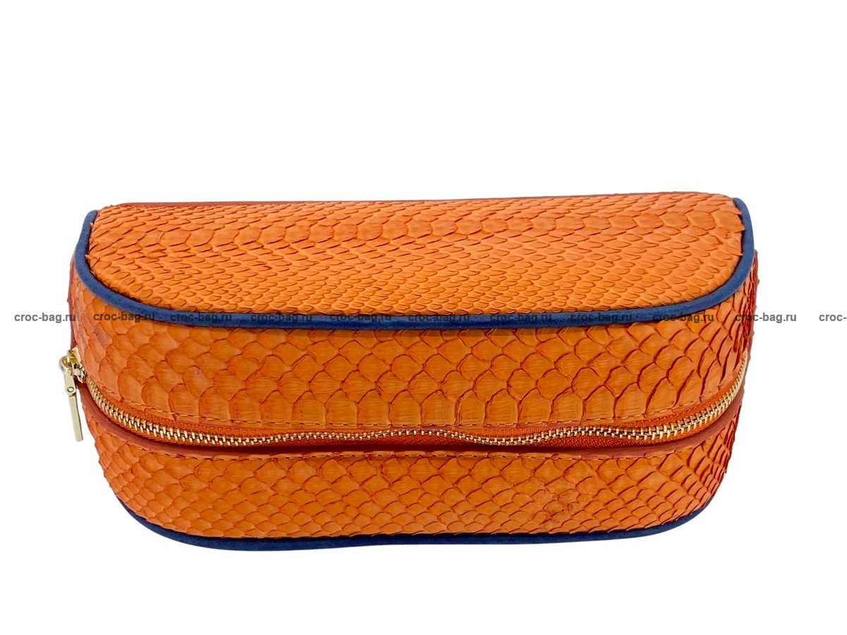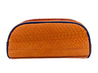 Компактная косметичка, несессер из питоновой кожи, овальной формы в верхней части. В верху питонового несессера вшита металлическая молния с небольшими запусками на края несессера, что при полном открытии молнии, позволяет получить более широкий и удобный доступ внутрь несессера из кожи питона . Внутри косметичка выполнена в одном объеме, текстиль использован в качестве материала подклада. Все внешние поверхности несессера выполнены с применением натуральной кожи питона. Данная питоновая косметичка отшита в серии косметичек из натуральной кожи питона в различных цветах.