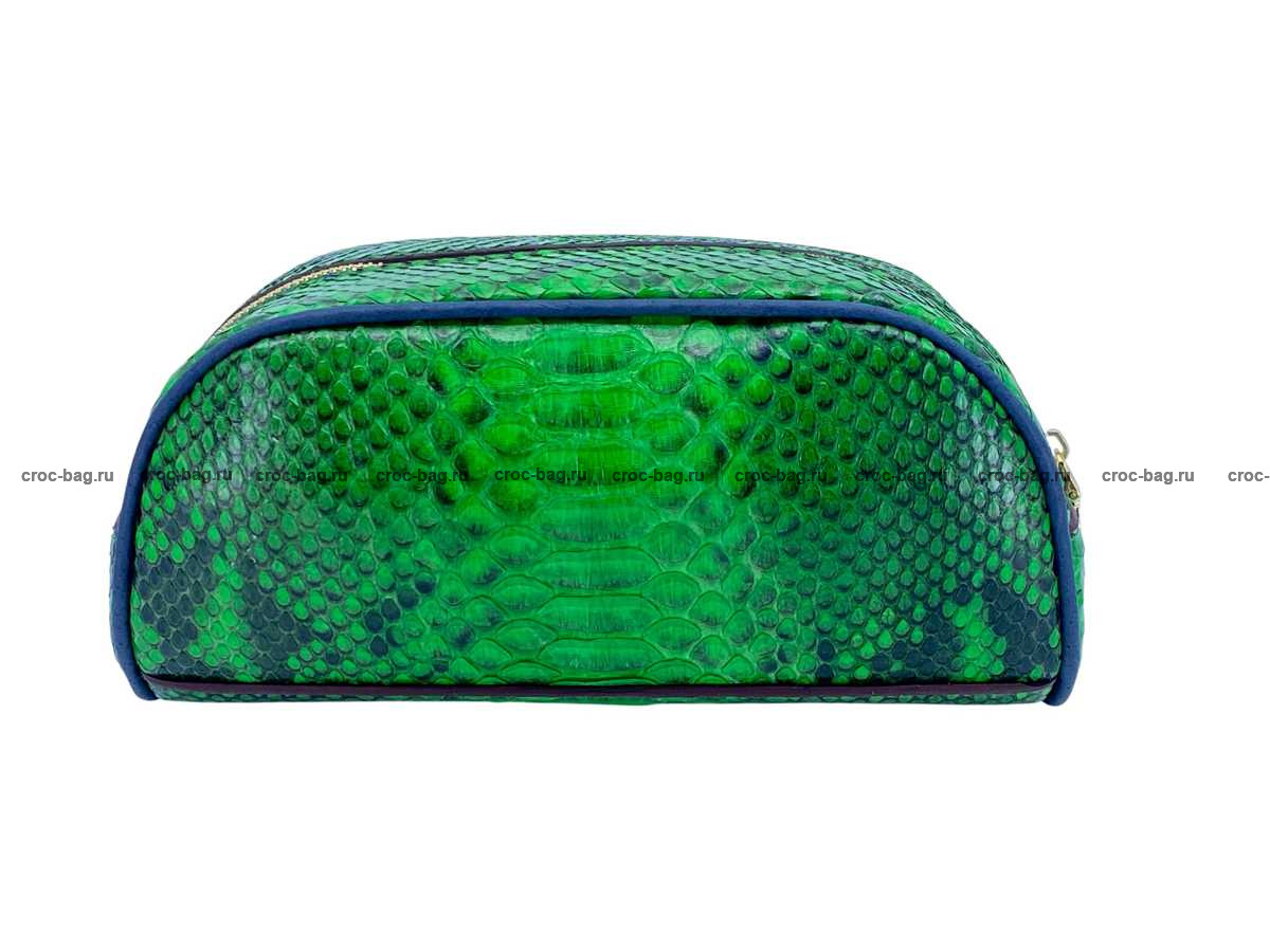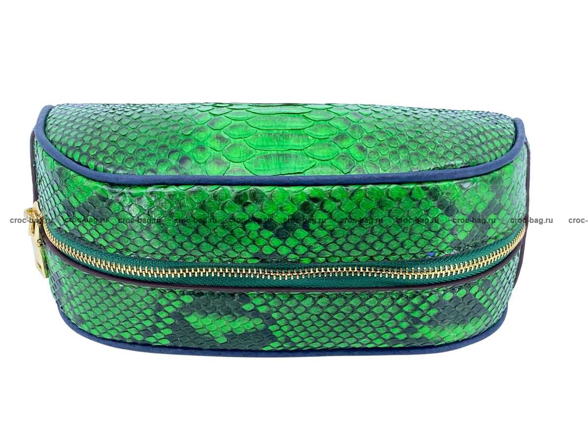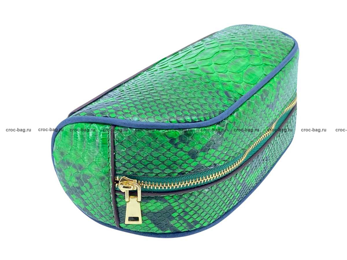 Несессер, косметичка из кожи питона цвет ярко-зеленый