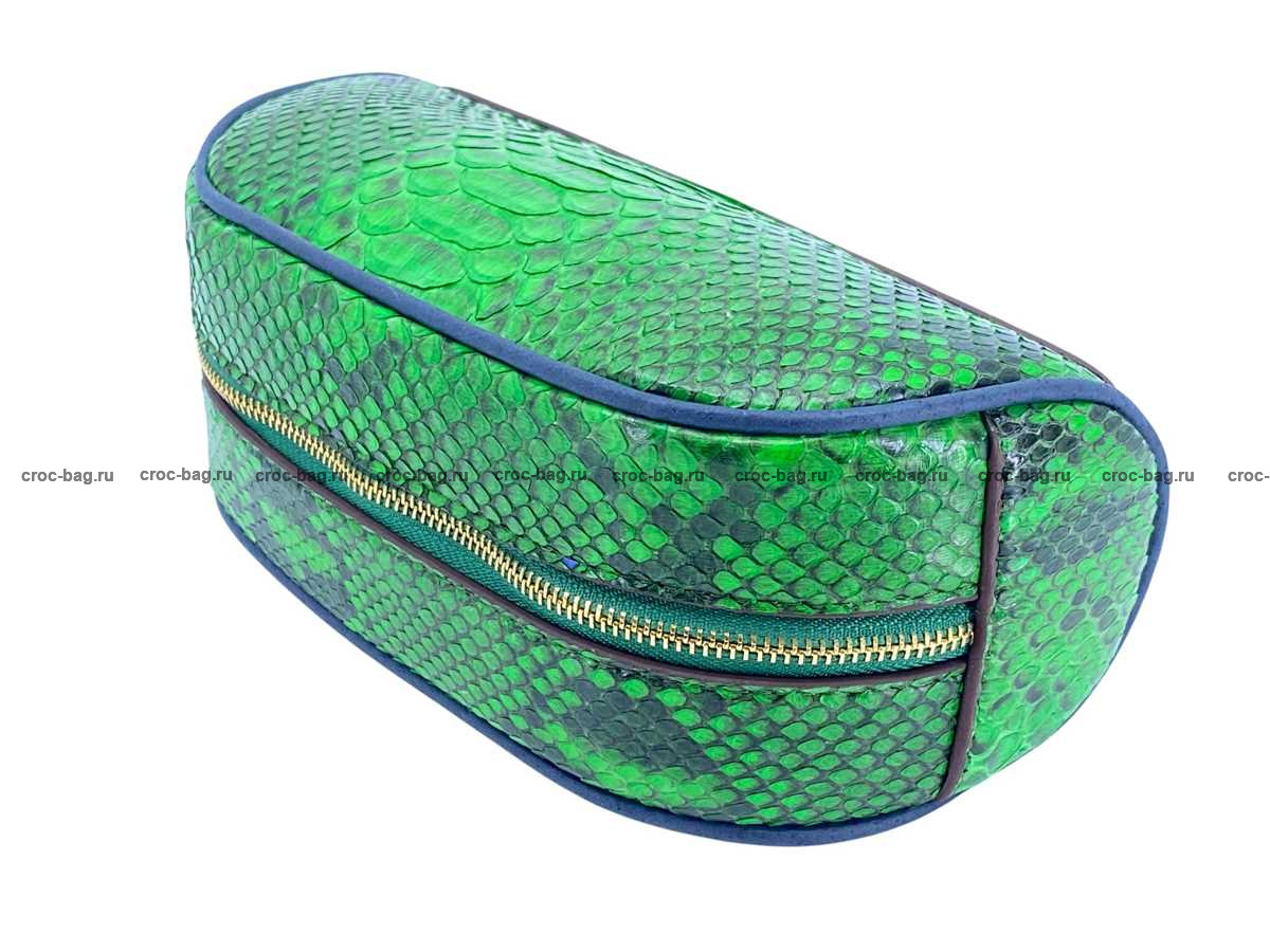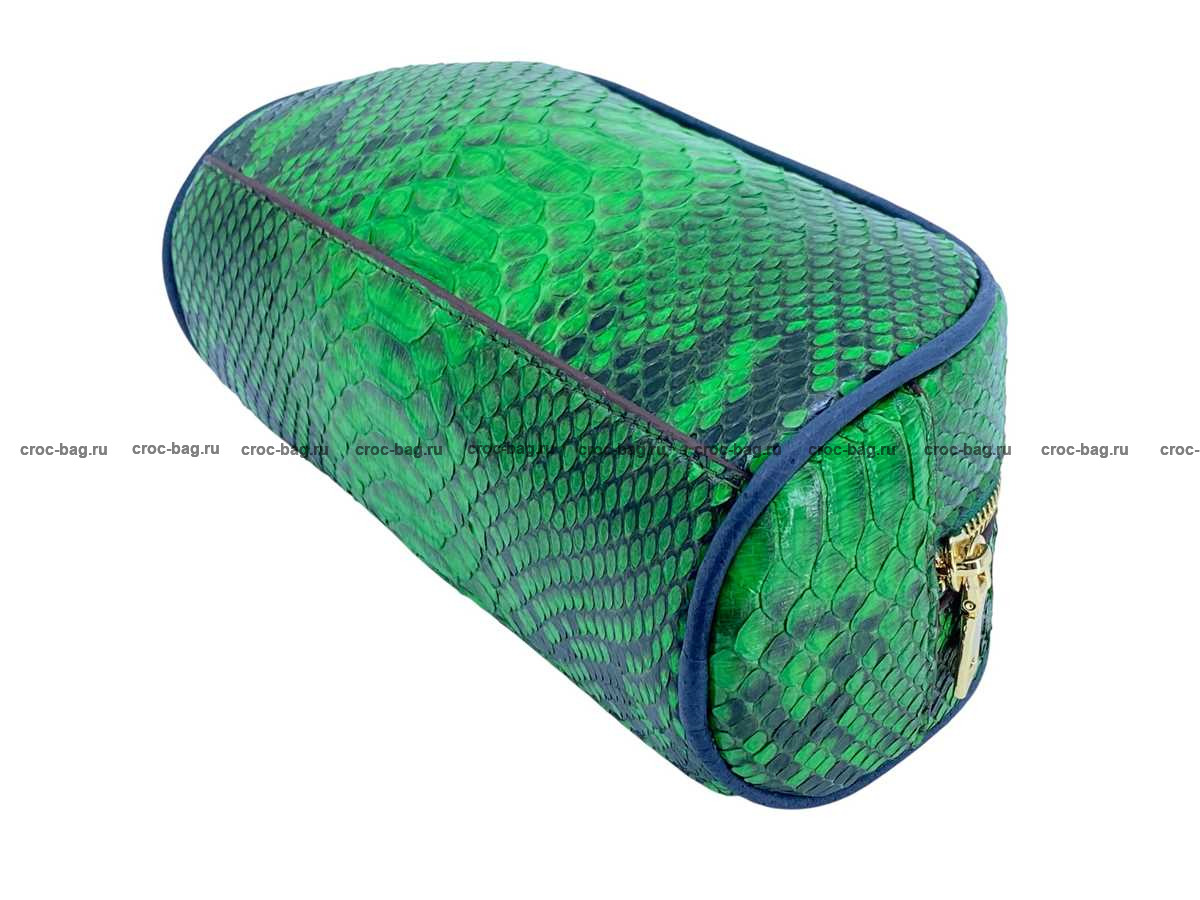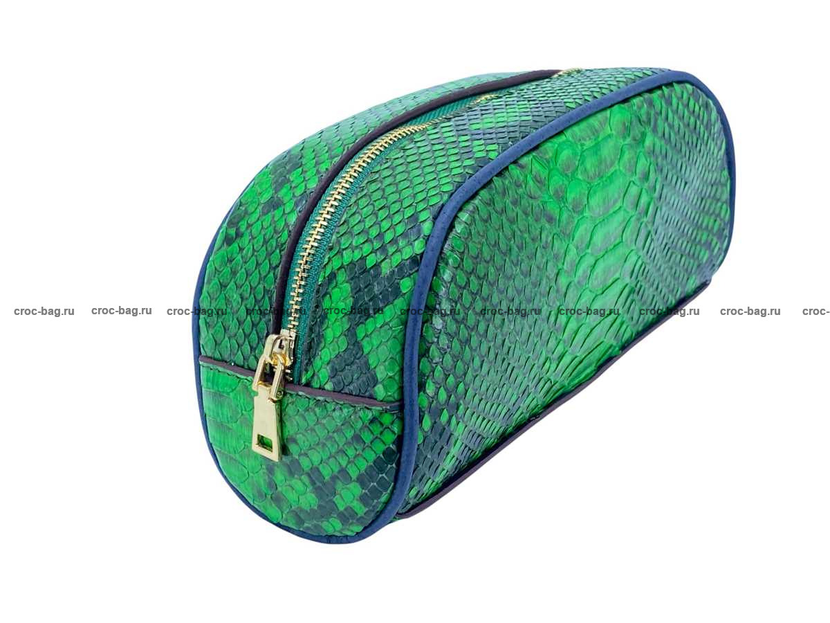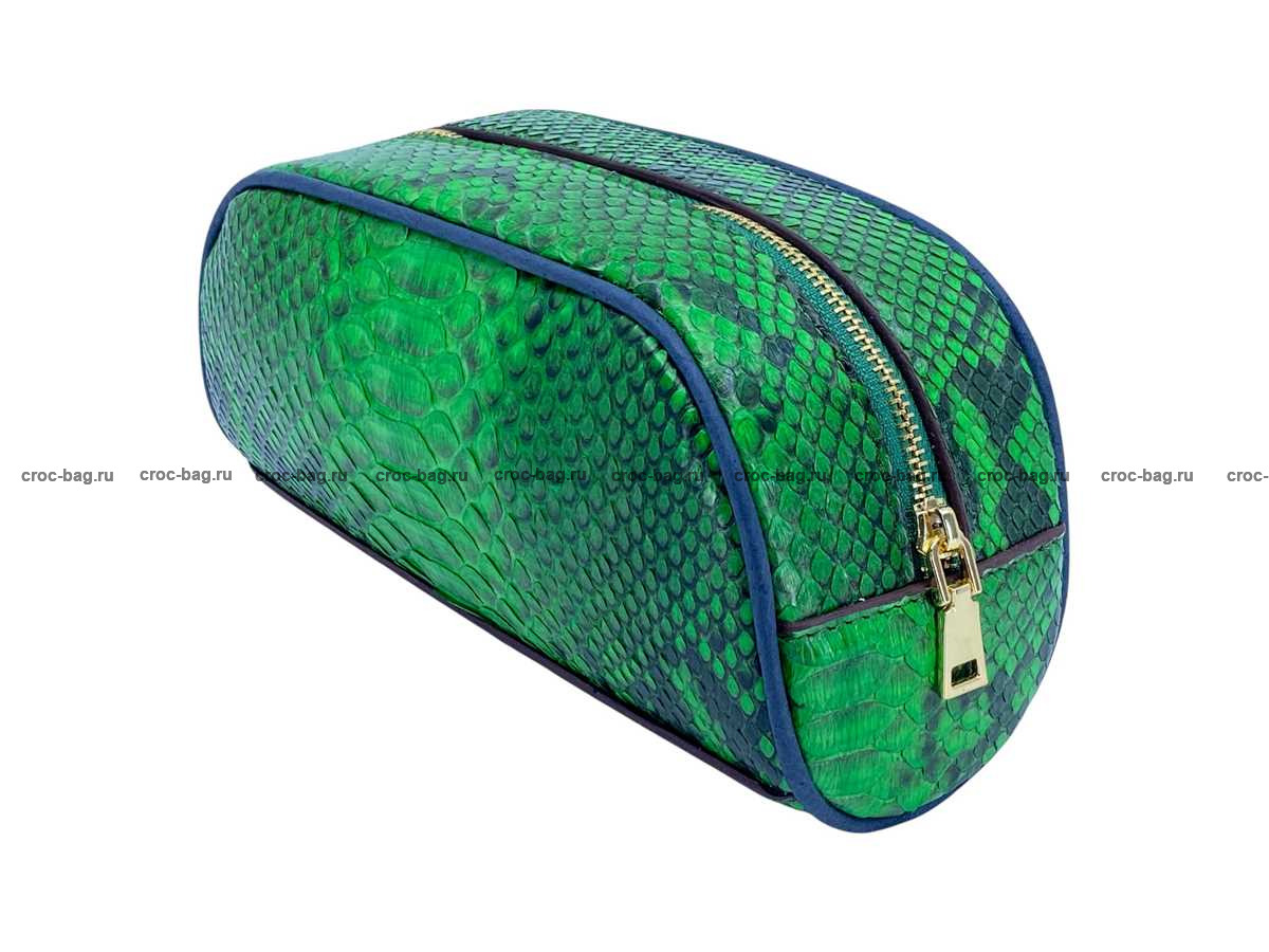 Несессер, косметичка из кожи питона цвет ярко-зеленый