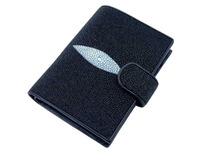 Это очень интересное изделие, я бы даже сказал многофункциональное потому как в одном изделии совмещены обложка для документов, обложка для паспорта, обложка для автодокументов, вертикальное портмоне и кошелек автолюбителя и все это в одном изделии. Для пошива, данного портмоне используется натуральная кожа морского ската чёрного цвета, кожа крупнозернистая эластичная и всякий раз прикасаясь к ней вы будете ощущать натуральную зернистую фактуру кожи морского ската. На лицевой поверхности кошелька, в качестве основного украшения расположен горизонтальный белый глазок. Лицевая и обратная части портмоне выполнены из натуральной кожи морского ската, для повышения удобства пользования данной обложкой для документов на правой ее части выполнен удобный хлястик на который закрывается данное портмоне. Внутри обложки устроено отделение для паспорта, которое также можно использовать и как отделение для автодокументов, девять слотов для карточек пять из которых на левой стороне и четыре на правом отвороте портмоне, четырех плоских и удобных карманов на всю высоту обложки для документов, два на правом отвороте кошелька и два на левом отвороте под отделениями для карточек и одного отделения для банкнот с доступом в верхней части портмоне. Натуральная кожа теленка и текстиль использованы в качестве материалов подклада в данной обложке для документов из кожи морского ската.