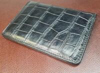 Классическая обложка для документов из крокодиловой кожи, в данном случае обложка для паспорта, это изделие было выполнено в комплекте с брючным ремнем и парой обуви. Для изготовления обложки использована брюшная часть крокодиловой кожи, цвет черный. В качестве дополнительного украшения видимые внутренние части обложки выполнены из крокодиловой кожи под цвет изделия.