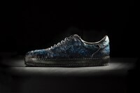 Спортивная пара обуви отшита по индивидуальному заказ, из кожи страуса, цвет темно синий, ручное окрашивание. Удобная противоскользящая, подошва, ортопедическая съемная стелька, высочайшее качество сборки, ручная подгонка, внимание к мельчайшим деталям.