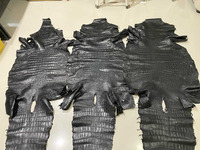 Одежная кожа крокодила брюхо, сет из трех шкур черного цвета.