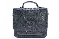 Мужская плечевая сумка из натуральной фактурной кожи крокодила черного цвета. Ширина-28см, высота-25см, толщина-10см. Для пошива сумок данной модели используется натуральная кожа сиамского крокодила фактурная спинная часть. Крокодиловая кожа высокого качества выделки и окраса. Кожа крокодила мягкая, эластичная и очень приятная на ощупь. На лицевой поверхности этой крокодиловой сумки устроен откидывающийся вверх лицевой клапан, в нижней части клапан фиксируется на металлические магнитные кнопки. Клапан украшен крупноразмерной, симметричной, красивой, фактурной затылочной частью крокодиловой шкуры. После затылочной части фактура крокодиловой кожи меняется на спинную. В верхней части сумки расположена удобная ручка, ручка выполнена на основании из кожи теленка, верхняя часть ручки отделена крокодиловой кожей. Обратная часть сумки выполнено из кожи крокодила с выразительной спинной фактурой кожи крокодила. В верхней части обратной поверхности сумки вшита металлическая молния преграждающая доступ в удобный плоский карман. Боковые поверхности и дно сумки выполнены из крокодиловой кожи с гладкой фактурой. В верхней части боковых поверхностей вшиты D-образные кольца для крепления съемного плечевого ремешка. Съемный плечевой ремешок, с возможностью регулировки по длине, выполненный на основании из мягкой кожи теленка идет в комплекте с сумкой. В качестве дополнительного украшения, верхняя поверхность плечевого ремня выполнена с применением крокодиловой кожи. На лицевой поверхности сумки, под лицевым клапаном устроен объемный накладной карман с молнией в верхней его части. На лицевой поверхности этого накладного кармана расположена молния преграждающая доступ в еще один плоский карман. На лицевой поверхности выше накладного кармана вшита еще одна металлическая молния которая также преграждает доступ в еще один плоский карман расположенный на лицевой поверхности крокодиловой сумки. В верхней части сумки, под лицевым клапаном вшита металлическая молния преграждающая доступ в основной объем сумки. Внутри сумка выполнена в одном объеме, для удобства пользования данной крокодиловой сумкой на внутренних поверхностях устроены карманы для предметов первой необходимости. Боковой накладной сдвоенный и боковой на молнии скрытый. В качестве материала подклада применена натуральная кожа теленка, цвет кожи теленка подобран под цвет крокодиловой кожи.