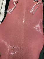 Натуральная полированная кожа морского ската продолговатой формы, розового цвета. Полированная кожа морского ската СОРТ – А, без дефектов и повреждений.