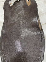 Натуральная полированная кожа морского ската продолговатой формы, темно-коричневого, кофейного цвета. Полированная кожа морского ската СОРТ – А, без дефектов и повреждений.