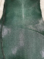 Натуральная полированная кожа морского ската продолговатой формы, темно-зеленого цвета. Полированная кожа морского ската СОРТ – А, без дефектов и повреждений.