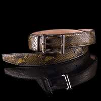Фотография данного ремня, выполненного из кожи питона, представлены в ознакомительных целях, ремень отсутствует в наличии. Данный классический брючный ремень из кожи питона был изготовлен и окрашен мастером по индивидуальному заказу, стоимость этого изделия указана ориентировочно.