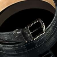Фотография данного ремня, выполненного из кожи крокодила, представлены в ознакомительных целях, ремень отсутствует в наличии. Данный классический брючный ремень из кожи крокодила был изготовлен и окрашен мастером по индивидуальному заказу, стоимость этого изделия указана ориентировочно.