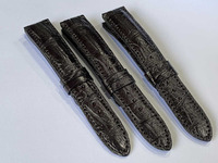 Ремешки для часов из натуральной кожи крокодила цвет черный размер 18х16мм длина длинного ремешка 115см и длинна кроткого ремешка 75мм. Для пошива ремешков для часов используется натуральная кожа молодого сиамского крокодила нежнейшая брюшная часть, крокодиловая кожа высокого качества выделки и окраса с полу-глянцевым финишным покрытием. Крокодиловые ремешки для часов выполнены на основании из кожи теленка. На ремешке имеется два колечка, на полотне ремешка пробиты отверстия. Ремешки находятся в Таиланде, на товары из Таиланда действует бесплатная доставка в Россию. Получив данный ремень вам останется лишь сменить данный ремень на своих часах самому или же обратится с этим в любую мастерскую по близости к вашему дому.