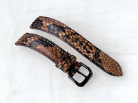 Часовые ремешки из натуральной кожи питона коричневого цвета. Размер ремешков 115мм и 75мм, размер посадочных мест 18мм и 16мм. Эта пара часовых ремешков изготовлена мастером в Москве, при пошиве используется натуральная кожа питона, в качестве материала подклада применена кожа теленка, края обработаны урезом. Возможен индивидуальный пошив часовых ремешков любой сложности, для любой модели часов, из любого материала, в том числе из экзотической кожи. Если у Вы хотите приобрести эту пару ремешков для часов и или вы желаете заказать индивидуальный пошив часовых ремешков для своих любимых часов, напишите нам, и мастер свяжется с Вами и лично ответит на любые интересующие Вас вопросы.