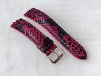 Часовые ремешки из натуральной кожи питона красного цвета. Размер ремешков 115мм и 75мм, размер посадочных мест 20мм и 18мм. Эта пара часовых ремешков изготовлена мастером в Москве, при пошиве используется натуральная кожа питона, в качестве материала подклада применена кожа теленка, края обработаны урезом. Возможен индивидуальный пошив часовых ремешков любой сложности, для любой модели часов, из любого материала, в том числе из экзотической кожи. Если у Вы хотите приобрести эту пару ремешков для часов и или вы желаете заказать индивидуальный пошив часовых ремешков для своих любимых часов, напишите нам, и мастер свяжется с Вами и лично ответит на любые интересующие Вас вопросы.
