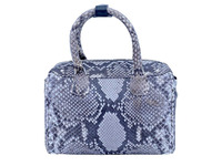 Сумка женская саквояж из натуральной кожи питона натурального окраса 9,5 дюймов шириной. Для пошива сумок данной модели использована натуральная кожи питона, спинная часть, кожа высокого качества выделки и окраса. Сумка данной модели классический женский саквояж среднего размера придется по вкусу тем из вас кто отдает предпочтения удобным классическим среднеразмерным сумкам. В верхней части сумки вшита металлическая П-образная молния, именно такое устройство молнии в саквояже позволяет избежать неприятных ощущений и царапин рук об металлическую молнию, более широко отрыть сумку и с большим удобством и комфортом достать или убрать нечто большое в сумку. Саквояж не имеет определенной лицевой или обратной стороны и поэтому им может с удобством пользоваться как левша, так и правша, а также вы можете с одинаковым комфортом носить сумку в удобной для вас руке. В верхней части сумки вшиты ручки, ручки выполнены из кожи питона, крепление ручек сумки выполнено с применением D-образных металлических колец и позволяет с легкостью как опустить ручки вниз саквояжа, так и поднять их вверх. Обе стороны саквояжа и боковые вставки выполнены из натуральной кожи питона. Дно саквояжа отшито из кожи теленка черного цвета, на дне сумки расположено четыре металлических ножки. В качестве дополнительного украшения саквояжа вставка вдоль молнии выполнена из кожи питона и сбегает на боковые вставки сумки. На боковых вставках саквояжа вшиты металлические кольца для крепления съемного плечевого ремня. Плечевой ремень съемный, с регулировкой по длине, выполнен на основании из натуральной кожи теленка черного цвета и в качестве дополнительного украшения отделан полоской из кожи питона. Фурнитура, использованная при пошиве данного саквояжа хромированная серебряного цвета. Внутри саквояж отшит в одном объеме, что вполне разумно для сумок среднего размера, для повешения удобства пользования данной сумкой внутри выполнены карманы: вшивной боковой на молнии, пространство вокруг молнии украшено вставкой из кожи питона и на противоположной стороне плоский накладной карман, верхняя часть кармана также имеет отделку полоской из кожи питона. В качестве материала подклада использована мягкая ткань темного цвета. Применение ткани в качестве материала подклада уменьшает вес саквояжа и делает сумку более доступной по цене.