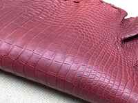 Крокодиловая кожа, брюхо сиамского крокодила ширина 37см, цвет винный. Обращаем ваше внимание на то, что фото крокодиловой кожи представлены справочно, оттенок кожи, а также наличие и отсутствие дефектов лучше уточнять непосредственно перед покупкой, свяжитесь с нами, и мы подберем кожу крокодила, удовлетворяющую вашим требованиям. Галантерейная крокодиловая кожа, толщина 1.2-1.5мм. Мягкая и эластичная крокодиловая кожа, кожа сиамского крокодила брюшная часть, кожа высокого качества выделки и окраса, нежная и приятная на ощупь. Эта крокодиловая кожа отлично подойдет для индивидуального пошива кожгалантереи, ремней, сумок, кошельков и т.д. Качество выделки кожи и ее эластичность также позволяют использовать эту кожу для пошива обуви, свяжитесь с нами, и мы подберем для вас пару крокодиловых шкур, для пары обуви. Хочется отметить то, что в отличии от некоторых, мы не тянем шкуры для увеличения их ширины, а это значит, что вы легко сможете натянуть кожу крокодила на обувную колодку. Также вы можете приобрести у нас кожу крокодила одежной выделки для пошива одежды. И в случае если вы ищите кожу неокрашенную кожу крокодила, краст, напишите нам, мы подберем для вас и краст кожи крокодила.