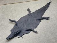 Шкура сиамского крокодила с головой и лапами ширина 20см, длина 83см, цвет черный, фактурная крокодиловая шкура с настоящей крокодилово головой и лапками. Натуральная крокодиловая голова (череп) покрытый крокодиловой кожей, крокодиловые челюсти с зубами. Передние и задние крокодиловые лапки с пальцами и когтями, лапки набиты синтепоном и имеют объемную форму, очень приятные на ощупь, мягкие и эластичные, всякий раз прикасаясь к крокодиловым лапкам вы будете получать поистине незабываемые приятные ощущения. Данная крокодиловая шкура отличный и незабываемый подарок, прекрасное украшение интерьера. В передней части крокодиловой шкуры устроена натуральная крокодиловая голова, следом за головой на шкуре расположена фактурная затылочная часть, далее в центральной части шкуры устроена спинная фактурная крокодиловая кожа, по бокам от этой центральной фактурной части расположено крокодиловое брюхо, следуя далее фактурная спинная часть переходит в хвост с неповторимой природной фактурой, сначала более крупной и по меру сужения хвоста, фактура становится все более мелкой.