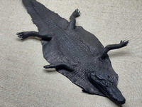 Шкура сиамского крокодила с головой и лапами ширина 21см, длина 85см, цвет черный, фактурная крокодиловая шкура с настоящей крокодилово головой и лапками. Натуральная крокодиловая голова (череп) покрытый крокодиловой кожей, крокодиловые челюсти с зубами. Передние и задние крокодиловые лапки с пальцами и когтями, лапки набиты синтепоном и имеют объемную форму, очень приятные на ощупь, мягкие и эластичные, всякий раз прикасаясь к крокодиловым лапкам вы будете получать поистине незабываемые приятные ощущения. Данная крокодиловая шкура отличный и незабываемый подарок, прекрасное украшение интерьера. В передней части крокодиловой шкуры устроена натуральная крокодиловая голова, следом за головой на шкуре расположена фактурная затылочная часть, далее в центральной части шкуры устроена спинная фактурная крокодиловая кожа, по бокам от этой центральной фактурной части расположено крокодиловое брюхо, следуя далее фактурная спинная часть переходит в хвост с неповторимой природной фактурой, сначала более крупной и по меру сужения хвоста, фактура становится все более мелкой.