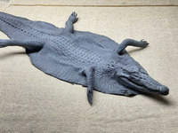 Шкура сиамского крокодила с головой и лапами ширина 32см, длина 120см, цвет серый, фактурная крокодиловая шкура с настоящей крокодилово головой и лапками. Натуральная крокодиловая голова (череп) покрытый крокодиловой кожей, крокодиловые челюсти с зубами. Передние и задние крокодиловые лапки с пальцами и когтями, лапки набиты синтепоном и имеют объемную форму, очень приятные на ощупь, мягкие и эластичные, всякий раз прикасаясь к крокодиловым лапкам вы будете получать поистине незабываемые приятные ощущения. Данная крокодиловая шкура отличный и незабываемый подарок, прекрасное украшение интерьера. В передней части крокодиловой шкуры устроена натуральная крокодиловая голова, следом за головой на шкуре расположена фактурная затылочная часть, далее в центральной части шкуры устроена спинная фактурная крокодиловая кожа, по бокам от этой центральной фактурной части расположено крокодиловое брюхо, следуя далее фактурная спинная часть переходит в хвост с неповторимой природной фактурой, сначала более крупной и по меру сужения хвоста, фактура становится все более мелкой.