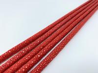 Шнурок из полированной кожи морского ската толщиной 5мм, длина 20см, красного цвета. Мягкие, эластичные шнурки из натуральной кожи морского ската прекрасно подходят для изготовления ювелирный украшений и бижутерии. Корды из кожи ската диаметром 5мм и длиной 20см идеально подходят для изготовления как мужских, так и женских ручных браслетов из полированной кожи морского ската. Для изготовления данных шнурков используется натуральная, эластичная, высокого качества выделки и окраса кожа морского ската. Для изготовления шнурков из кожи ската меленьких диаметров, таких как 4 и 5мм используются шкуры морского ската маленького размера именно поэтому шнурки из ската 4 и 5мм толщиной изготавливаются в пределах 20см. Доступные типоразмеры шнурков из полированной кожи морского ската: