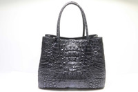 Женская сумка из натуральной фактурной крокодиловой кожи черного цвета. Ширина-33см, высота-23см, толщина-14см, размеры указаны справочно и требуют уточнения. Для пошива сумок данной модели используется натуральная фактурная кожа крокодила, кожа высокого качества выделки и окраса, мягкая, упругая и очень приятная на ощупь. Лицевая часть сумки украшена крокодиловой кожей с крупным, фактурным и симметричным затылком, ниже затылка фактура крокодиловой кожи меняется на спинную. Обратная часть сумки украшена крокодиловой шкурой со спинной фактурой. Боковые вставки выполнены с применением хвостовой части кожи крокодила. Дно сумки устроено с применением крокодиловой кожи со спинно-хвостовой фактурой, верхние ручки сумки отшиты с применением брюшной части кожи крокодила. Сумка трапециевидной формы, с легким сужением к верхней части. В верху сумки устроены удобные высокие ручки из кожи крокодила, высота ручек позволяет с удобством носить данную сумку как в руке, так и на предплечье. Крепление ручек сумки выполнено в верхней части лицевой и обратной сторонах сумки внакладку. В верхней части сумки устроен кожаный хлястик на скрытых магнитах, эта конструкция преграждает доступ в основной объем сумки. Плоский карман на молнии делит внутренний объем сумки на два отделения. Внутри сумки устроены удобные карманы для предметов первой необходимости, сдвоенный боковой накладной карман и боковой карман на молнии. Внутри сумки вшиты D- образные кольца для крапления съемного плечевого ремня. Необходимо отметить отдельно что данные крокодиловые сумки на укомплектованы плечевым ремнем, а контракция сумки не предусматриваем D-образных металлических колец для крепления плечевого ремня. В качестве материала подклада в сумке используется натуральная кожа теленка. Кожа теленка по цвету подобрана под крокодиловую кожу. На дне крокодиловой сумки устроены пять металлических хромированных ножек.