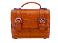 Женская сумка из натурального крокодилового брюха оранжевого цвета. Крокодиловое брюхо с уникальным природным рисунком применено при пошиве сумок данной модели. Данная сумка из брюха сиамского крокодила приглянется тем из вас кто отдает предпочтение компактным женским плечевым сумкам. Сумка правильной прямоугольной формы, с лицевым клапаном украшенным декоративными ремешками из кожи крокодила, в нижней части ремешков устроены декоративные пряжки. В верхней части сумки расположена ручка, расстояние от верха сумки до ручки 5см, в местах крепления верхней ручки к сумке применены металлические держатели с кольцами для крепления плечевого ремня. Все видимые поверхности сумки, лицевая часть, обратная сторона, лицевой клапан, верхняя ручка, боковые вставки и дно выполнены из натуральной кожи рептилии. На дне сумки выполнены четыре металлических ножки. Плоская стенка делит внутренний объем сумки на два отделения, внутри сумки устроен накладной карман на молнии, мягкая кожа теленка, подобранная по цвету под цвет кожи крокодила используется в качестве материала подклада. В комплекте с сумкой идет съемный плечевой ремень, ремень изготовлен из натуральной кожи теленка, вешняя поверхность плечевого ремня отделана кожей крокодила. Свяжитесь с нами для уточнения цены, возможно, что фабрика уже отшила сумки данной модели по более низким ценам, мы уточним эту информацию для вас. Если вы хотите уточнить наличие данной сумки, но в другом цвета напишите нам, и мы проверим актуальное наличие сумок данной серии на фабрике.