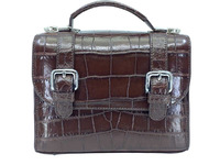 Женская сумка из натурального крокодилового брюха темно-коричневого цвета. Крокодиловое брюхо с уникальным природным рисунком применено при пошиве сумок данной модели. Данная сумка из брюха сиамского крокодила приглянется тем из вас кто отдает предпочтение компактным женским плечевым сумкам. Сумка правильной прямоугольной формы, с лицевым клапаном украшенным декоративными ремешками из кожи крокодила, в нижней части ремешков устроены декоративные пряжки. В верхней части сумки расположена ручка, расстояние от верха сумки до ручки 5см, в местах крепления верхней ручки к сумке применены металлические держатели с кольцами для крепления плечевого ремня. Все видимые поверхности сумки, лицевая часть, обратная сторона, лицевой клапан, верхняя ручка, боковые вставки и дно выполнены из натуральной кожи рептилии. На дне сумки выполнены четыре металлических ножки. Плоская стенка делит внутренний объем сумки на два отделения, внутри сумки устроен накладной карман на молнии, мягкая кожа теленка, подобранная по цвету под цвет кожи крокодила используется в качестве материала подклада. В комплекте с сумкой идет съемный плечевой ремень, ремень изготовлен из натуральной кожи теленка, вешняя поверхность плечевого ремня отделана кожей крокодила. Свяжитесь с нами для уточнения цены, возможно, что фабрика уже отшила сумки данной модели по более низким ценам, мы уточним эту информацию для вас. Если вы хотите уточнить наличие данной сумки, но в другом цвета напишите нам, и мы проверим актуальное наличие сумок данной серии на фабрике.