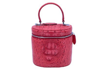 Сумка женская из натуральной кожи крокодила, фактурная спинная часть шкуры сиамского крокодила красного цвета. Натуральная кожа крокодила, спинная часть крокодиловой шкуры с неповторимым природным фактурным узором крокодиловой спины используется при пошиве сумок данной модели. Сумка цилиндрической формы, в верхней части сумки вшита удобная ручка, расстояние от верха сумки до ручки 10см, крепление ручек сумки выполнено с применением металлических колец, к этим кольцам также крепится плечевой ремень. Чуть ниже на сумке устроена двухсторонняя металлическая молния. На лицевой поверхности сумки расположен натуральный фактурный крокодиловый затылок, обратная часть сумки выполнена из кожи крокодила с фактурной спинной частью. Дно сумки отшито из кожи крокодила со спиной фактурой, на дне сумки устроены четыре металлические ножки. Сумка внутри выполнена в одном объеме, кожа теленка использована для материала подклада, внутри сумки устроен один плоский накладной карман. Плечевой ремень и кожи теленка и крокодила поставляется в комплекте с сумкой. Свяжитесь с нами если вы хотите купить сумку данной модели но в другом цвете, мы уточним наличие сумок данной модели на фабрике.