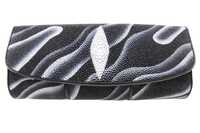 Сумка клатч из кожи морского ската цвет черный с узором в виде волнистых линий серого цвета