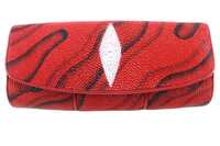 Сумка клатч из кожи морского ската цвет красный с узором в виде волнистых линий черного цвета