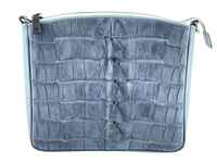 Сумка из комбинированной кожи, В качестве основного украшения лицевая поверхность сумки выполнена из крокодиловой кожи с фактурной хвостовой частью, боковые части сумки, дно и обратная сторона сумки выполнены из натуральной кожи теленка, подобранного под цвет крокодиловой кожи. На обратной стороне сумки устроен удобный карман на молнии. В верхней часть сумки вшита металлическая молния преграждающая доступ в основной объем сумки. На боковых поверхностях сумки устроены D-образные кольца для крепления съемного плечевого ремня. Съемный плечевой ремень, с возможностью регулировки по длине идет в комплекте с сумкой, минимальное расстояние от верха сумки до плечевого ремня 43см, максимальное расстояние от верха сумки до плечевого ремня 80см. Такой диапазон регулировки позволяет удобно пользоваться данной сумкой в любое из времен года. Плечевой ремень выполнен из нейлоновой ленты, верхняя поверхность плечевого ремня имеет отделку крокодиловой кожей. Внутри сумка выполнена в одном объеме, на боковых поверхностях устроены удобные карманы, вшивной на молнии и на противоположно стороне накладной карман, верхняя часть накладного кармана имеет отделку кожей теленка. В качестве материала подклада использована мягкая ткань песочного цвета.