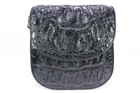 Плечевая сумка из фактурной крокодиловой кожи черного цвета. Ширина-19см, высота-20см, толщина-7-8см. Для пошива сумок данной модели используется фактурная спинная часть кожи сиамского крокодила. На лицевой поверхности сумки устроен откидывающийся вверх лицевой клапан, украшением лицевого клапана является крупная симметричная крокодиловая затылочная часть, переходящая в спинную часть кожи крокодила на обратной стороне сумки. В нижней части лицевого клапан вшитый магнит на который фиксируется этот лицевой клапан. На лицевой поверхности сумки ниже лицевого клапана применена кожа крокодила со спинной фактурой. С целью увеличения подвижности и эластичности сумки боковые вставки выполнены с применение натуральной кожи теленка, по цвету кожа теленка подобрана под цвет кожи крокодила. На боковых поверхностях сумки расположены D-образные кольца для крепления съемного плечевого ремня. Съемный плечевой ремень с возможностью регулировки по длине идет в комплекте с сумкой. Плечевой ремень выполнен на основании из натуральной кожи теленка и в качества дополнительного украшения лицевая поверхность ремня отделена крокодиловой кожей. Внутри сумка устроена в одном объеме, внутри устроен небольшой карман на молнии. В качестве материала подклада данной сумки используется кожа теленка и ткань, по цвету кожа теленка подобрана под цвет кожи крокодила.