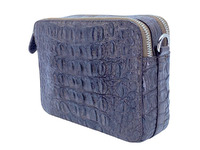 Плечевая сумка из натуральной кожи сиамского крокодила, фактурная спинная часть, цвет темно-коричневый. Удобная компактная сумка из натуральной фактурной крокодиловой кожи, сумка с двумя молниями. Лицевая и обратная сторона сумки выполнены из натуральной фактурной спинной части кожи крокодила. Боковые части сумки и дно изготовлены из кожи крокодила с гладкой фактурной, вставки возле верхней молнии также выполнены из натуральной кожи крокодила с гладкой фактурой. На боковых поверхностях сумки устроены D- образные металлические хромированные кольца для крепления съемного плечевого ремня. В верхней части сумки вшито две металлические молнии, преграждающие доступ внутрь сумки. Сумка внутри устроена из двух отделений, внутри отделений устроены карманы, накладной на молнии и плоский накладной карман. Натуральная кожа спилок используется внутри сумки в качестве материала подклада. На дне сумки устроены 4 металлических ножки. В комплекте с сумкой поставляется съемный плечевой ремень с возможностью регулирования по длине. Ремень выполнен на основании из натуральной кожи теленка, внешняя часть ремня имеет отделку кожей крокодила под цвет изделия.
