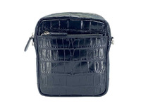 Мужская плечевая сумка из натуральной кожи крокодила черного цвета. Сумка мужская из крокодилового брюха. Для пошива сумок данной модели используется кожа сиамского крокодила, брюшная часть. Лицевая сторона сумки и обратная ее часть выполнены из брюшной части кожи крокодила, боковые вставки сумки, дно сумки и верхняя часть сумки вокруг молнии изготовлены из брюшной части крокодиловой кожи. В верхней части сумки вшиты металлическая молния преграждающая доступ в основной объем сумки, молния П-образная, молния спускается на края сумки для более удобного доступа в основной объем сумки. На лицевой части сумки устроен удобный карман на молнии. На боковых поверхностях сумки расположены металлические кольца посредством которых выполняется крепление плечевого ремня к сумке. Съемный плечевой ремень, с возможностью регулировки по длине поставляется в комплекте с сумкой, ремень выполнен на основании из натуральной кожи теленка, внешняя часть ремня имеет отделку натуральной кожей крокодила. Сумка внутри выполнена в одном объеме, для большего удобства пользования данной крокодиловой сумкой внутри устроены удобные карманы: плоский накладной и вшивной боковой на молнии. Натуральная кожа спилок используется в качестве материала подклада в данных сумках. Сумки данной модели отшиваются из крокодиловой кожи в черном и темно-коричневом цвете и данные сумки бывают из брюха крокодила и из фактурной спинной части. Если у вас появились вопросы про данную крокодиловую сумку, напишите нам, и мы постараемся ответить на них.