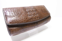 Женская сумка-клатч из натуральной, фактурной кожи крокодила темно-коричневого цвета. Ширина-25см, высота-13см, толщина-8см. Изделие данной модели может быть использовано и как женская плечевая сумка и как женский ручной клатч. Металлическая цепочка, звенья которой оплетены кожаным шнурком, цепочка используется в качестве плечевого ремешка и поставляется в комплекте с данным изделием. Пристегнув цепочку к сумке вы получаете плечевую сумку, отстегнув цепочку от сумки вы получаете ручной клатч. Крокодиловые клатчи данной модели отшиваются в двух размерах, в маленьком и в большом, эта большая модель. Для пошива крокодиловых сумок данной модели используется натуральная фактурная крокодиловая кожа, фактурная спинная часть шкуры крокодила. На лицевом клапане мы видим хвостовую фактуру крокодиловой кожи которая плавно перетекает на обратную часть сумки. Для придания данному клатчу максимальной подвижности и эластичности боковые вставки выполнены с применение кожи теленка, кожа теленка по цвету подобрана под цвет кожи крокодила. На лицевой части клатча устроен откидывающийся вверх лицевой клапан, в нижней части клапан фиксируется к сумке на магните. Плоская стенка делит внутренний объем клатча на два отдельных кармашка, внутри кармашков устроены отделения для карточек, одно из которых с прозрачным окошком, широкий плоский карман на молнии, карман устроен на всю ширину клатча и широкий, на всю ширину клатча плоский карман расположенный за карманом на молнии. На внутренней поверхности лицевого клапана вшиты металлический D-образные кольца для крепления съемного плечевого ремня-цепочки. В качестве материала подклада используется натуральная кожа теленка, подобранная по цвету с крокодиловой кожей и текстиль.
