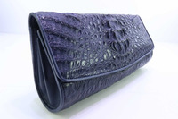 Женская сумка-клатч из натуральной, фактурной кожи крокодила темно-синего цвета. Ширина-25см, высота-13см, толщина-8см. Изделие данной модели может быть использовано и как женская плечевая сумка и как женский ручной клатч. Металлическая цепочка, звенья которой оплетены кожаным шнурком, цепочка используется в качестве плечевого ремешка и поставляется в комплекте с данным изделием, пристегнув цепочку к сумке вы получаете плечевую сумку, отстегнув цепочку от сумки вы получаете ручной клатч. Крокодиловые клатчи данной модели отшиваются в двух размерах, в маленьком и в большом, эта большая модель. Для пошива крокодиловых сумок данной модели используется натуральная фактурная крокодиловая кожа, фактурная спинная часть шкуры крокодила. В качестве украшения лицевой части клатча, в центральной части клапана расположена фактурная затылочная часть крокодиловой шкуры, переходящая в спинную часть на обратной стороне сумки. Для придания данному клатчу максимальной подвижности и эластичности боковые вставки выполнены с применение кожи теленка, кожа теленка по цвету подобрана под цвет кожи крокодила. На лицевой части клатча устроен откидывающийся вверх лицевой клапан, в нижней части клапан фиксируется к сумке на магните. Плоская стенка делит внутренний объем клатча на два отдельных кармашка, внутри кармашков устроены отделения для карточек, одно из которых с прозрачным окошком, широкий плоский карман на молнии, карман устроен на всю ширину клатча и широкий, на всю ширину клатча плоский карман расположенный за карманом на молнии. На внутренней поверхности лицевого клапана вшиты металлический D-образные кольца для крепления съемного плечевого ремня-цепочки. В качестве материала подклада используется натуральная кожа теленка, подобранная по цвету с крокодиловой кожей и текстиль.
