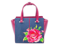 Удобная, красивая и модная современная среднеразмерная женская сумка из натуральной кожи морского ската черного цвета с притом в виде розы красного цвета. При изготовлении сумок данной модели используется натуральная кожа морского ската, кожа ската мягкая, крупнозернистая и очень приятная на ощупь. Лицевая и обратная стороны сумки выполнены с применением кожи ската и украшены притом в виде бутона розы красного цвета. На лицевой и обратной сторонах сумки устроены удобные верхние ручки, ручки выполнены из натуральной кожи теленка винного цвета. Крепление верхних ручек к сумке выполнено с применением красивой хромированной фурнитуры. Расстояние от веха сумки до ручек – 10см. В верхней части сумки вшита металлическая молния преграждающая доступ в основной объем сумки. Слева и справа от верхней молнии, на лицевой и обратной стенке сумки вшиты D-образные металлические кольца для крепления съемного плечевого ремня. Поверхности слева и справа от верхней молнии выполнены из натуральной кожи теленка, боковые вставки дно сумки также выполнены из кожи теленка винного цвета. Дно сумки оборудовано металлическими ножками. Плоский карман на молнии делит внутренний объем сумки на два отделения, внутри этих отделений устроены удобные карманы: сдвоенный накладной карман и на противоположной стороне боковой вшивной карман на молнии. В качестве материала подклада данной сумки из кожи морского ската использована мягкая ткань. В комплекте с сумкой идет съемный плечевой ремень с возможностью регулировки по длине, ремень выполнен из натуральной кожи теленка винного цвета.