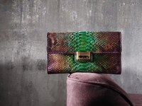 Сумка женская, клатч, из кожи питона. Сумка была изготовлена и окрашена мастером в ручную, по индивидуальному заказу. Особое внимание было уделено деталям этой сумки. Фото и цена данного изделия представлены в ознакомительных целях.