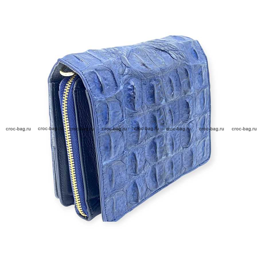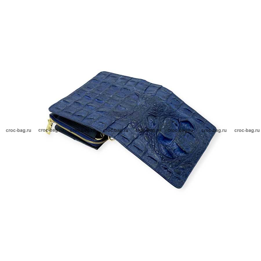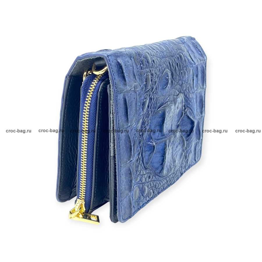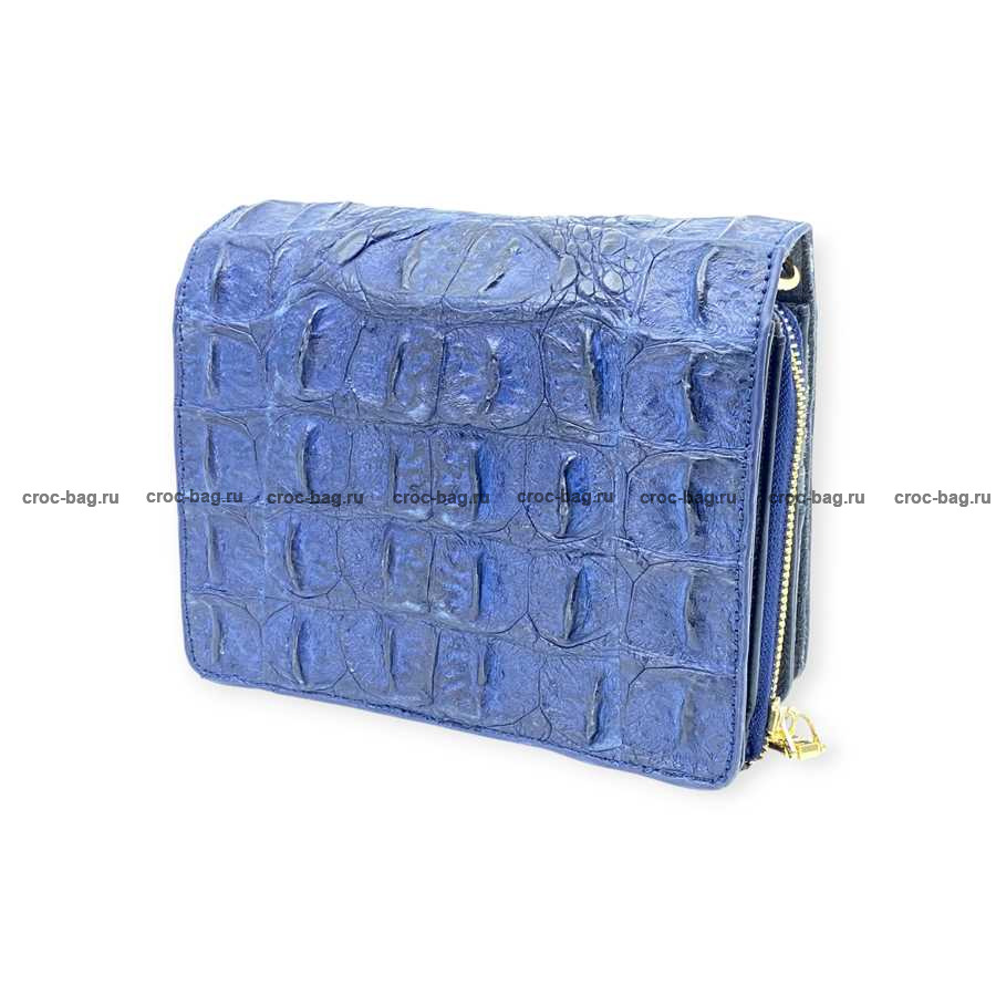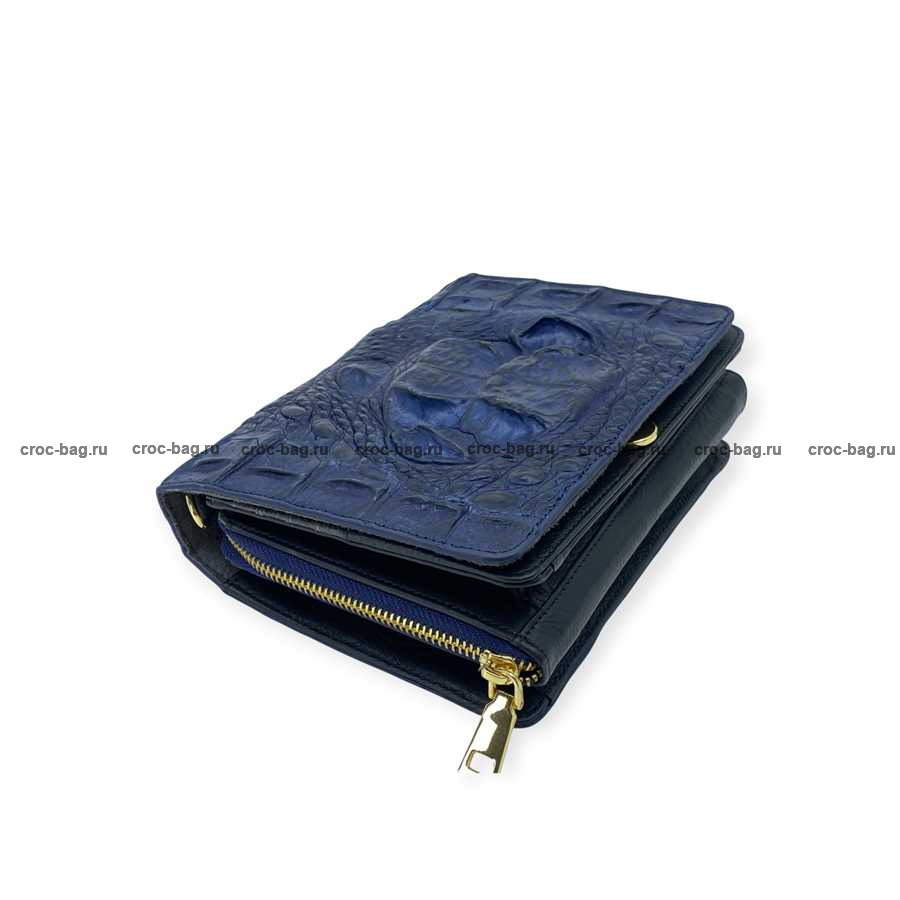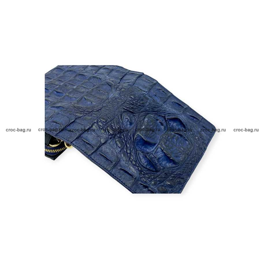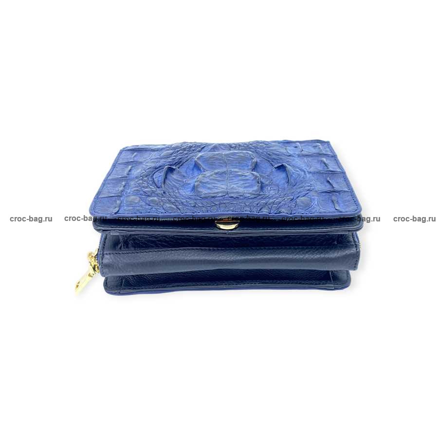 Женская сумка из фактурной кожи крокодила цвет темно-синий