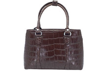 В верхней части сумки устроены удобные ручки, выполненные из кожи крокодила, высоты ручек достаточно чтобы носить данную крокодиловую сумку как в руке, так и на предплечье, а в некоторых случаях и на плече. Лицевая о обратная части сумки украшены декоративными накладками из кожи крокодила. В верхней части сумки вшита металлическая молния закрывающая доступ внутрь сумки. Кожа теленка коричневого цвета используется в качестве материала подклада. Съемный, с регулировкой по длине плечевой ремень поставляется в комплекте с сумкой.