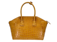 Новая партия женских сумок из кожи крокодила, для пошива сумок данной модели используется натуральная кожа крокодила высокого качества выделки и окраса. В верхней части сумки вшиты удобные высокие ручки из крокодиловой кожи, высота от верха сумки до ручек 13-14см, что вполне достаточно для ношения данных крокодиловых сумок как в руке, так и на предплечье. Для дополнительного удобства в комплекте с данной сумкой поставляется съемный плечевой ремень. В верхней части сумки вшита металлическая молния преграждающая доступ в основной объем сумки, сумка внутри выполнена в одном объемен, внутри сумки устроены карманы. Мягкая кожа теленка используется в качестве материала подклада внутри данных сумок из кожи крокодила.