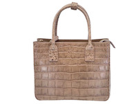 Женская сумка из натуральной кожи крокодила, использована брюшная часть крокодиловой кожи. Крокодиловая кожа высокого качества выделки о окрашивания. Сумка прямоугольной формы. В верхней части сумки вшиты удобные ручки, выполненные в коже крокодила, расстояние от верха сумки до ручек 13см, этого расстояния достаточно для того чтобы носить данную сумку как на предплечье, так и в руках, или используя съемный плечевой ремень, данную сумку можно носить на плече, плечевой ремень поставляется в комплекте с сумкой. В верхней части сумки вшита металлическая молния которая преграждает доступ внутрь сумки. Плоский карман на молнии делит внутреннее пространство сумки на две части. Натуральная кожа теленка, подобранная по цвету под цвет крокодиловой кожи применена в качестве материала подклада сумки.