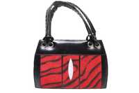 Женская сумка из кожи морского ската цвет красный с узорами в виде черных волнистых линий