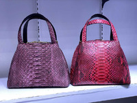 Сумки женские из натуральной питоновой кожи, цвет красный брюшная часть, кожа питоновая нубук фиолетового цвета брюшная часть. Новая модель женских питоновых сумок из, в верней части сумки устроены удобные верхние ручки, позволяющие носить данную сумки как в руке, так и на предплечье. В верхней части сумки вшита металлическая молния преграждающая доступ основной объем сумки. Мягкая ткань используется в данных сумках в качестве материала подклада. В верхней части сумки за ручками вшиты D-образные металлические кольца для крепления съемного плечевого ремешка, ремешок поставляется в комплекте с сумкой.