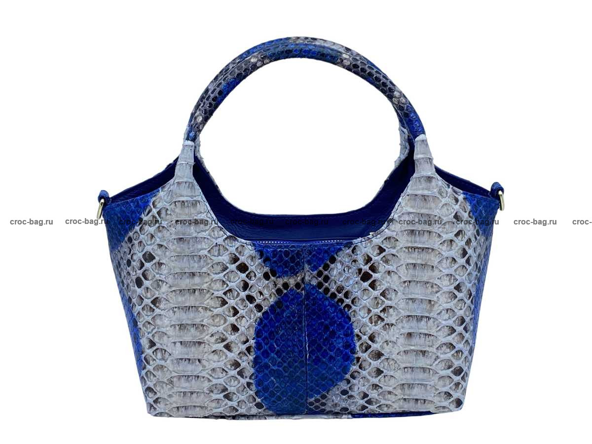 Для пошива сумок данной модели используется натуральная кожи питона, кожа питона высокого качества выделки и окраса. Сумка выполнена с расширением от низа к верху. В верхней части сумки устроены удобные ручки, расстояние в 15см от верха сумки до ручек позволяет носить данную сумку, как в руке, так и на предплечье. Данная сумка не имеет ярко выраженной лицевой или обратной сторон и посему сумкой данной модели с одинаковой степенью удобства могут пользоваться как правши, так и левши. В верхней части сумки вшита молния преграждающая доступ в основной объем сумки. Сумка внутри выполнена в одном объеме, для большего удобства внутри сумки устроена два широких накладных кармана, верхняя часть кармана имеет декоративную отделку полоской питоновой кожи. Материал подклада мягкая ткань. На боковых поверхностях сумки вшиты D-образные металлические кольца для крепления съемного плечевого ремня. Плечевой ремень поставляется в комплекте с данной сумкой. Плечевой ремень изготовлен из кожи теленка имеет регулировку по длине и в качестве дополнительного украшения внешняя часть плечевого ремня отделана кожей питона. Дно сумки выполнено с применением питоновой кожи и оборудовано металлическими ножками. При пошиве сумок данной модели использована металлическая фурнитура высокого качества и золотого цвета. Эта сумка была отшита в серии сумок из кожи питона в различных цветах.
