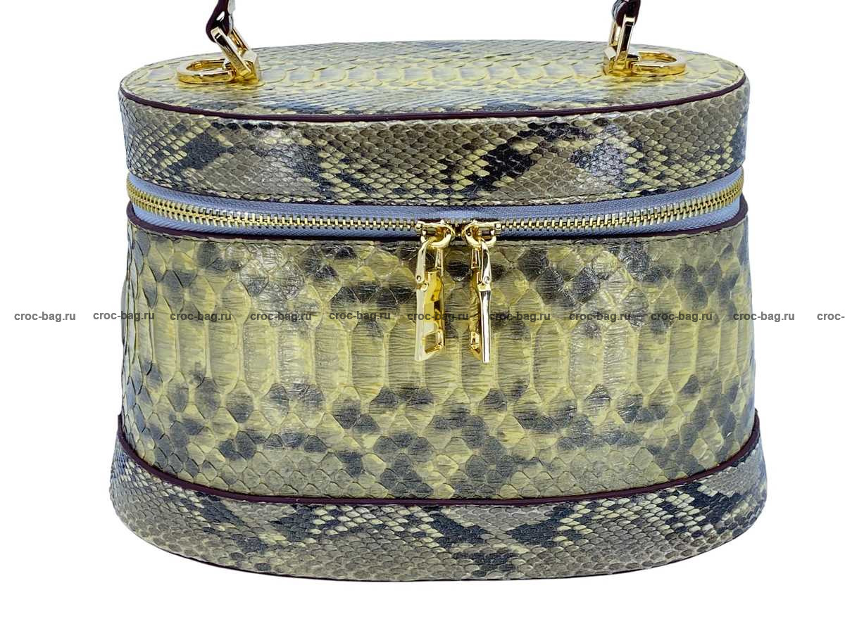 Женская сумка из натуральной кожи питона натурального окраса с золотом
