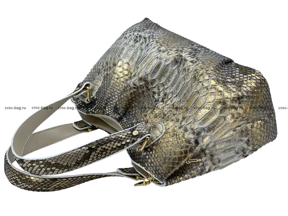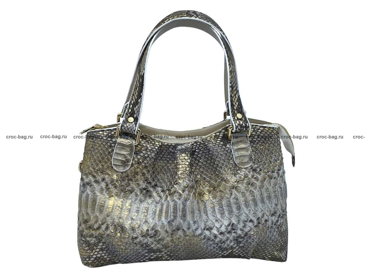 Женская сумка из натуральной кожи питона, натуральный окрас с позолотой