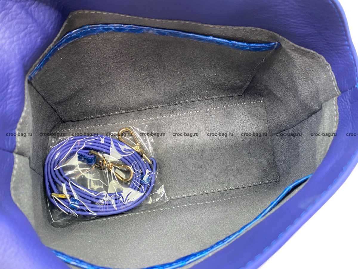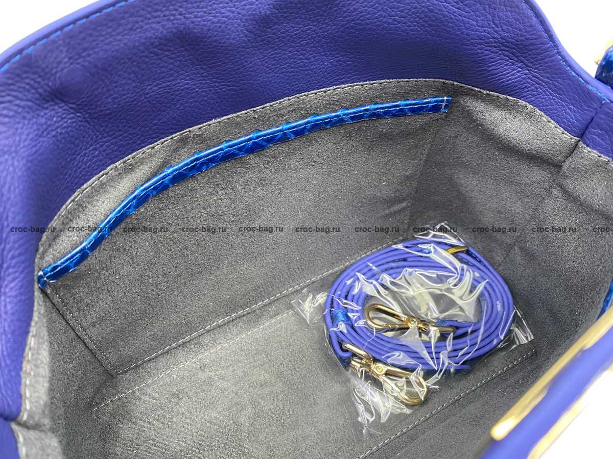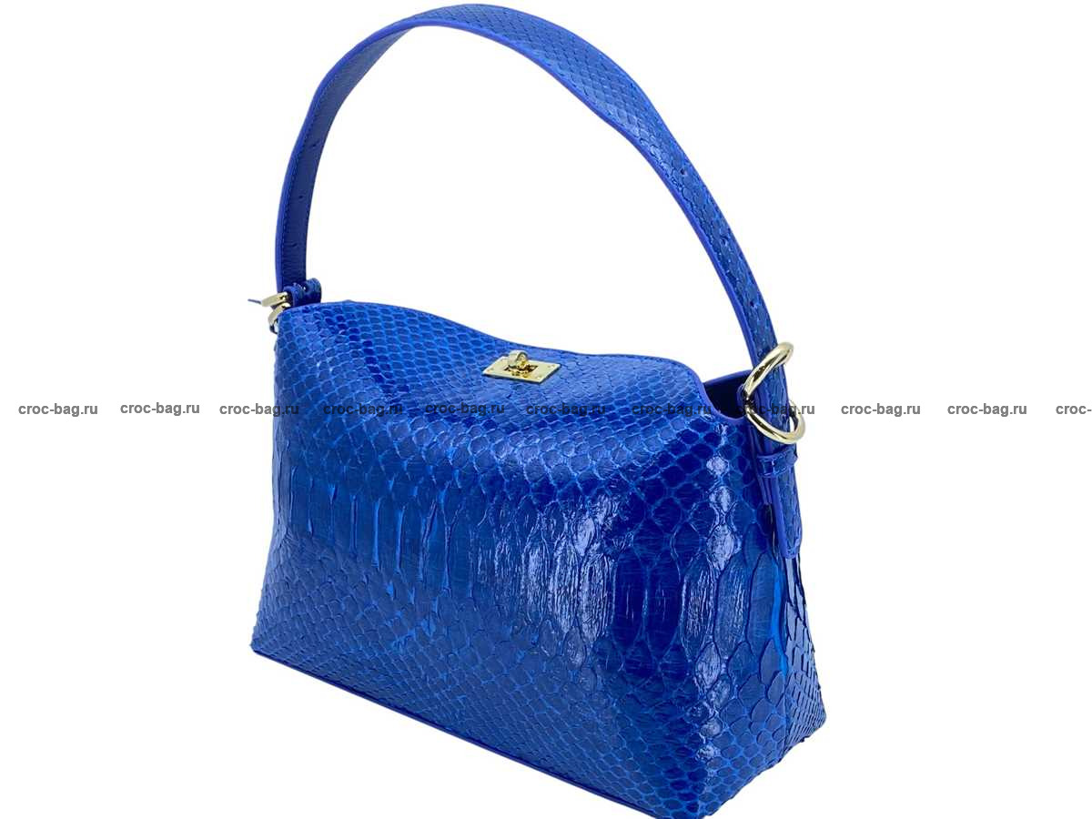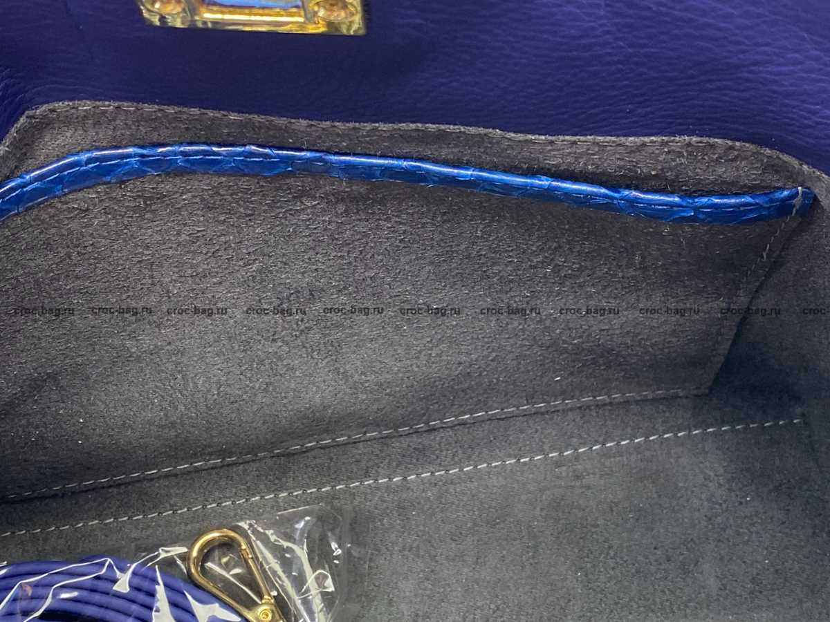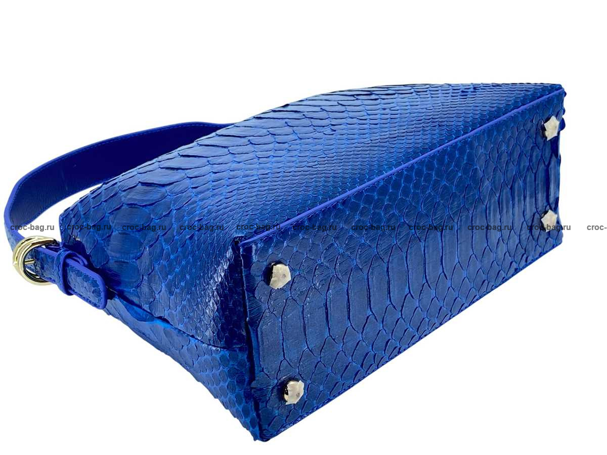 Удобная плечевая сумка изготовлена из натуральной кожи питона. В верхней части сумки устроена удобная широкая ручка, высота данной ручки позволяет носить данную сумку как на плече, на предплечье, так и в руке. Все внешние элементы сумки отшиты из натуральной питоновой кожи. В верхней части сумки устроен широкий клапан, который преграждает доступ в основной объем сумки, этот клапан закрывается на поворотный замочек. Сумка внутри выполнена в одном объеме, внутри сумки устроены два удобных широких кармана, внешняя кромка кармана имеет отделку кожей питона под цвет сумки. В качестве материала подклада применена мягкая ткань серого цвета. Дно сумки также выполнено с применением кожи питона, также дно сумки оборудовано металлическими ножками. При пошиве данных сумок использовалась фурнитура золотого цвета. В качестве дополнительного украшения сумки к одной из сторон ручки прикреплен шнурок из питоновой кожи с декоративным ключиком. В комплекте с сумкой идет плечевой ремень, ремень с регулировкой по длине, ремень выполнен из кожи теленка, внешняя часть плечевого ремня украшена кожей питона.